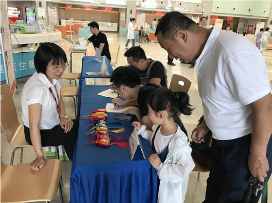 6月15日上午,为了给来院的患者及家属送去端午安康的祝福,我院在门诊大厅义诊台发放中药香囊,同时在儿科诊区给小朋友们发放五彩编织绳。