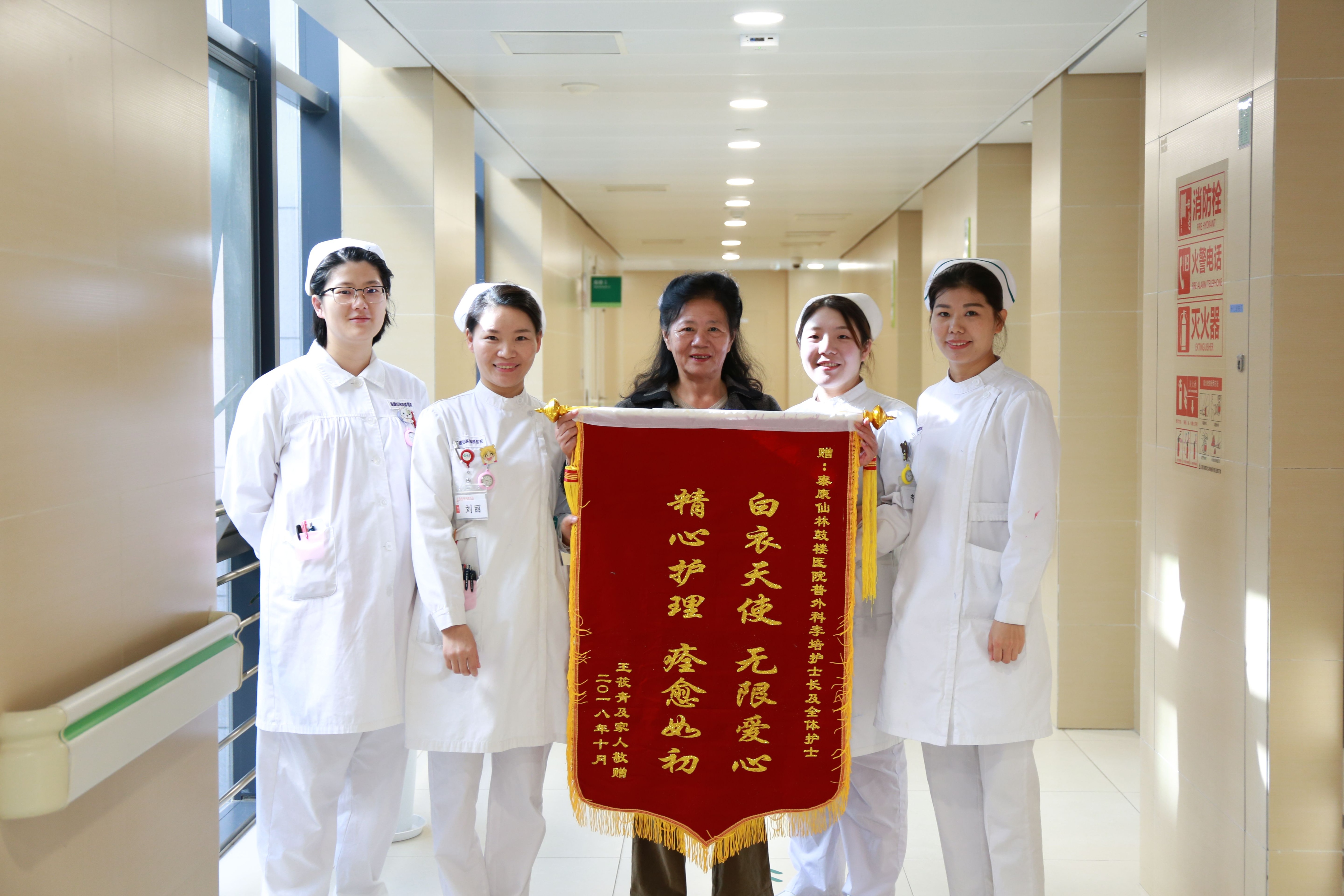 “普外科的医护人员对病人服务态度特别好,像家人一样,我们特别特别感谢!”前不久,曾在泰康仙林鼓楼医院住院的王女士将一面写有“白衣天使无限爱心,精心护理痊愈如初”的锦旗送到普外科的医护人员手中,感谢全体医护人员对她的精心治疗和贴心照顾。