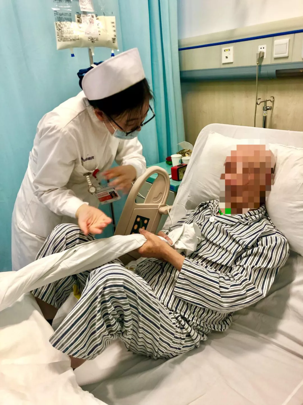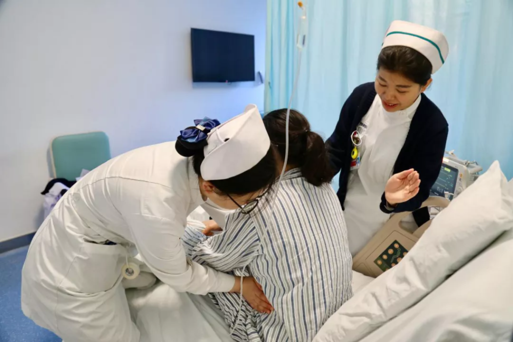 刚做完手术的曹女士由于创口比较大,夜里会疼到睡不好,就算值夜班,护士们也会跑无数次来问她疼不疼,时刻关注她的情况。为了帮助身体的恢复,曹女士需要多下床走动,在曹女士丈夫看来,妻子是很怕疼的人,下床走动完全是不可能办到的事。但是普外科的护士们做到了:第一天她们把床单系在床尾,手把手教曹女士用手拉着床单,试着在床上坐起来。第二天,她们帮助曹女士完成下床的动作。第三天,在护士的搀扶下,曹女士能够走动了。就这样循序渐进,在护士们的耐心帮助下,曹女士每天都坚持下床锻炼,身体恢复得很快。对于一些老年患者,术后极易引发肺部感染,医护人员便在工作之余经常给老年病人拍背,帮助他们排痰。