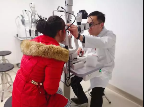 郭斌给鲁女士做术后视力检查
