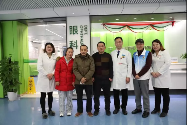鲁氏兄妹(左四、左二)与泰康仙林鼓楼医院眼科医护人员合影