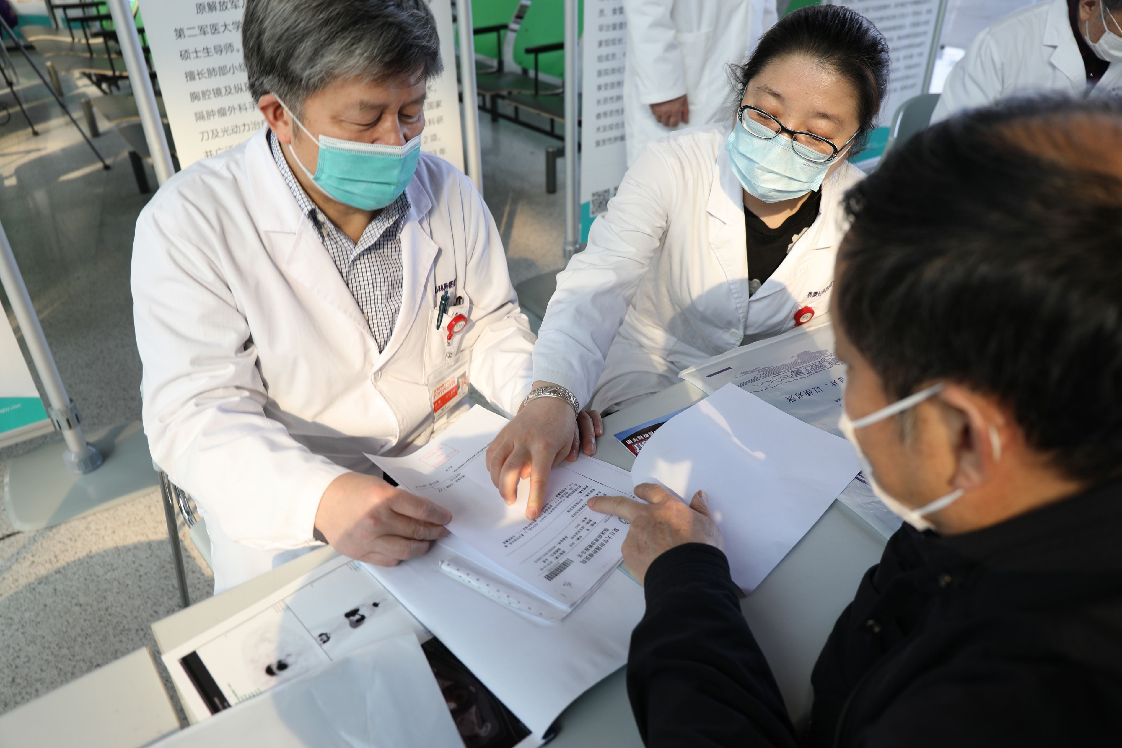 胸外科汪栋主任、病理科李桂梅主任共同为一位肺部结节患者提供咨询。