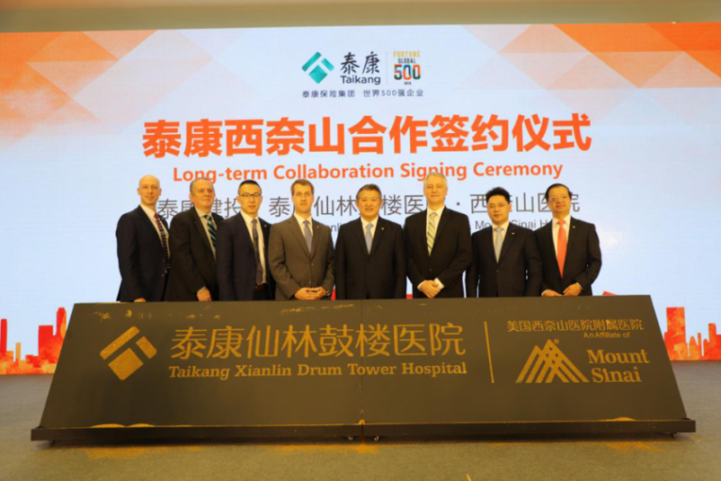 2018年11月16日,泰康保险集团全资子公司泰康健康产业投资控股有限公司(以下简称泰康健投)、泰康旗下首个医教研一体化大型综合医院泰康仙林鼓楼医院、全球顶尖医院美国西奈山医院共同签署长期合作协议。同日,泰康仙林鼓楼医院揭牌成为美国西奈山附属医院。双方医院将在医疗技术、医院运营管理、人才培养等方面进行长期深度合作,包括医疗质量与安全、IT系统规划、培训等项目,全面提升泰康仙林鼓楼医院的医疗能力和服务水平。